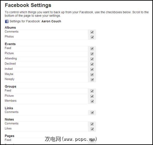 Backupify的优点在于可以根据您的喜好对其进行自定义和调整。以下是Facebook配置的页面。