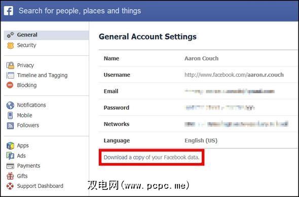 Facebook存档方法直接通过Facebook完成–此过程中不包含任何第三方应用程序。要访问此设置,请转到您的帐户设置。您应该会自动进入左侧的 General 标签。单击所有信息下方的链接,其中显示“ 下载您的Facebook数据的副本"。