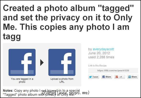 还记得Facebook存档不会下载您朋友标记的照片吗?好吧,这是一个解决方案。设置此食谱后,每次在照片中标记您的照片时,该照片就会添加到您只能查看的私人相册中。然后,您可以继续下载您的Facebook信息,这些照片中将包含这些信息。