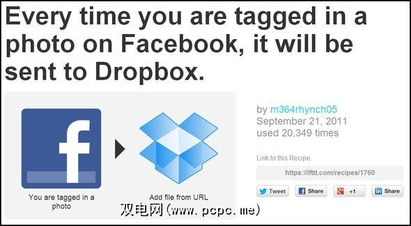 如果您已经Dropbox用户,这仅仅是它的又一个了不起的用途。如果不是的话,也许您应该考虑一下(或为您首选的云存储服务查找或制作IFTTT食谱)。此食谱的工作原理是自动将您标记有照片的所有照片发送到特定的Dropbox文件夹。