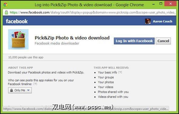 注意::像任何Facebook应用一样,重要的是要知道要连接到您的内容的内容。帐户及其所拥有的权限。例如,Pick&Zip询问它是否可以代表我张贴在我的墙上。由于这对于正常运行不是必需的,因此我不允许这样做。