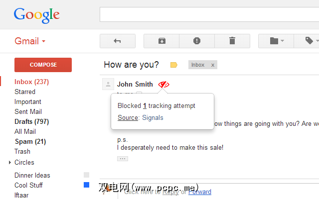PixelBlock是适用于Gmail用户的Chrome扩展程序,它试图阻止这些图像的加载,因此停止了服务跟踪您是否打开了电子邮件。简单,对吧?