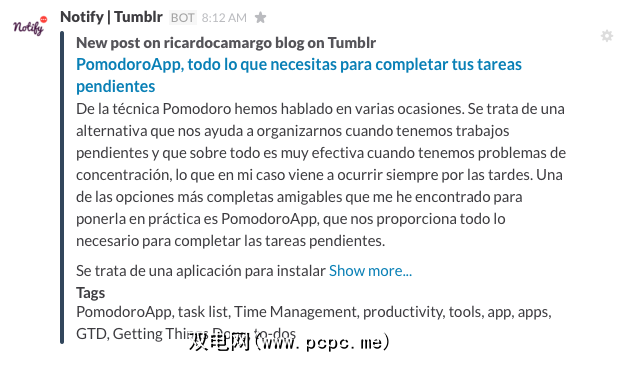 将关键字设置为您公司的名称,并且您可以通过一种有效的方式来监视谁在谈论您。我们为PCPC.me实现了此功能,并迅速找到各种各样的人链接到我们在Tumblr上的文章-有些甚至使用其他语言。