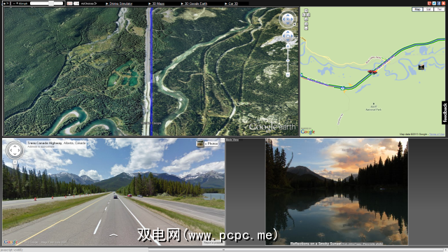开始驾驶员模式时,您的进度将显示在卫星和地图视图位于顶部,而您可以在左下方的街景视图模式下欣赏风景。右下角显示了沿途拍摄的近距离鸟瞰图或Panoramio图片。