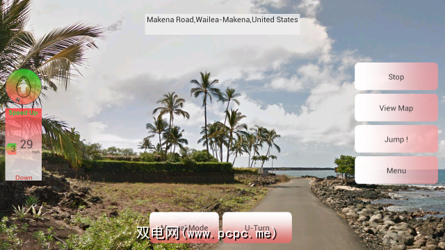 点击菜单,然后点击加载输入您要去的地方想参观。您还可以从许多预设中进行选择,包括自然风光,欧洲道路或宁静的道路。如果您站着不动,请点击移动!您可以通过左侧的相应菜单加速或减速。在手动模式中,系统会询问您要转弯的时间,而在自动模式中,应用程序会为您决定。感到无聊时,单击 Jump!,您便会被带到一个随机的地方。单击跳到这里!(在菜单下)将带您到设备的当前位置(如果已知的话)。