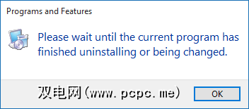 在上面的错误消息中,您现在将看到的位置在您尝试同时卸载两件事时显示。要自己查看,请执行系统搜索更改或删除程序并选择相关结果。然后,在列表上单击一个程序,然后按卸载。然后,在运行该卸载程序的情况下,返回到列表并执行相同的操作。结果:错误,并带有Windows XP样式图标。