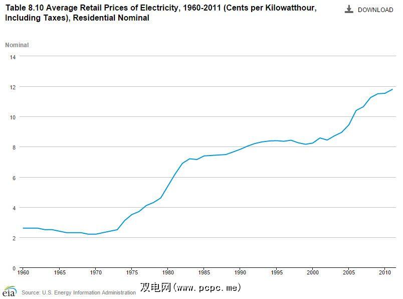 现在,请考虑您当前和未来的电网成本。它现在不便宜,而且可能永远也不会便宜。考虑到电力成本从1960年到2011年平均每年的通货膨胀率是3.15%。根据美国能源信息署的数据,数字可能会因您所在的位置而异。
