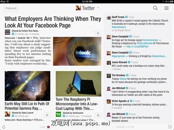 要开始从Flipboard浏览Twitter,您所需要做的就是在应用程序的设置中连接您的Twitter帐户。 ,您添加所有其他面板的位置相同,并且推文将与您关注的其他提要一样出现在Flipboard中。推文文章看起来会更好,就像常规文章一样出现在传统的Flipboard磁贴中。如果您最喜欢Twitter的方面是阅读推荐的文章,那么您将喜欢Flipboard呈现Twitter feed的方式。