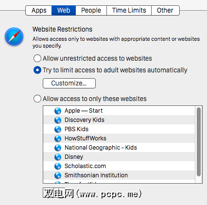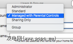 设置新的用户配置文件(在Mac的系统偏好设置中),请确保选择托管了家长控制功能。