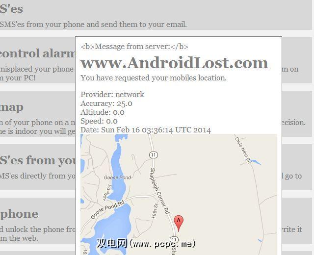 当然,除了那些非常酷的控制功能之外,即使没有在自己家中丢失的Android系统,使用该软件查找丢失的Android的能力也令人印象深刻。您甚至可以使用该应用程序打开手机中的GPS接收器,然后在地图上找到手机坐标。
