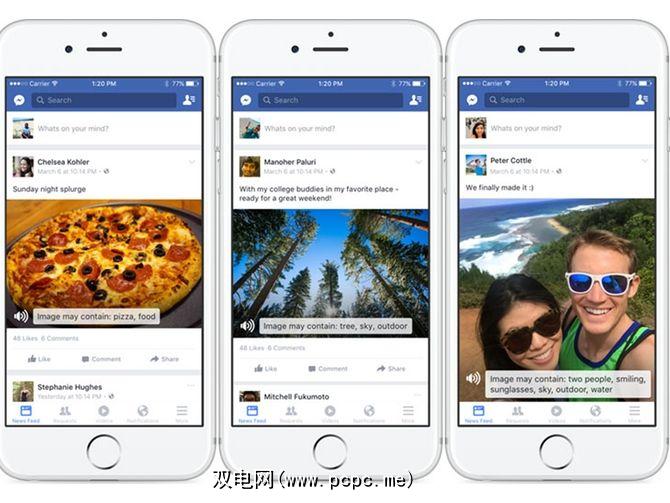 Facebook还具有使用alt文本属性的可访问性计划,但照片会自动为您添加标题。这是通过可识别照片中对象和背景的学习神经网络完成的,该网络类似于YouTube用于识别视频的系统。