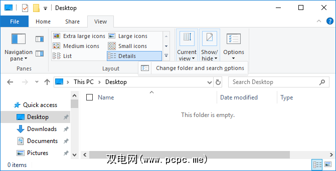 按 Windows + E 打开File Explorer。转到查看>选项>更改文件夹和搜索选项。