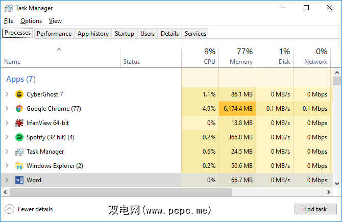 单击 Ctrl + Shift + ESC 打开任务管理器。或者,您可以右键单击任务栏,或在Windows中的任意位置单击 Ctrl + Alt + Del ,然后选择任务管理器。如果您看到紧凑的Windows 1o版本,请单击更多详细信息,并确保您位于进程标签中。现在浏览用于打开“正在使用的文件"的应用程序。例如,如果您正在查看文档,则查找Word。