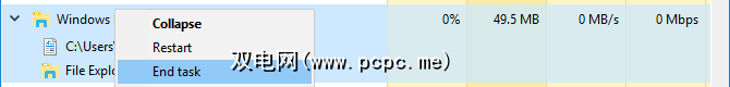要关闭File Explorer,请按 Ctrl + Shift + ESC ,找到 Windows资源管理器,右键单击该进程,然后选择结束任务。