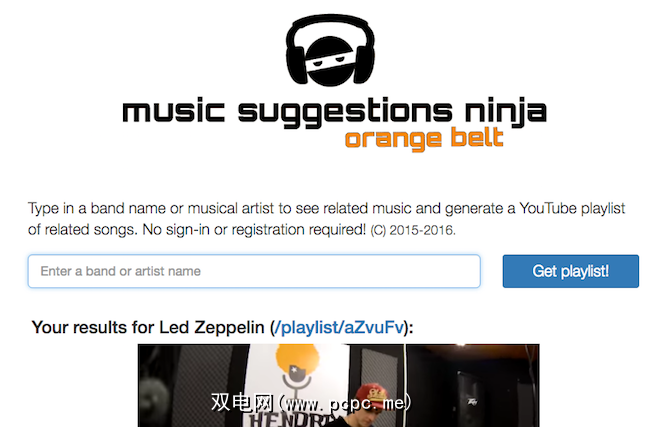 这是它的工作原理。输入您喜欢的艺术家或乐队的名称。 “音乐建议"忍者会处理几秒钟,然后吐出YouTube播放列表,该列表是通过算法生成的,可能包含您可能会喜欢的歌曲。就这么简单。您甚至不需要注册即可使用此网站。