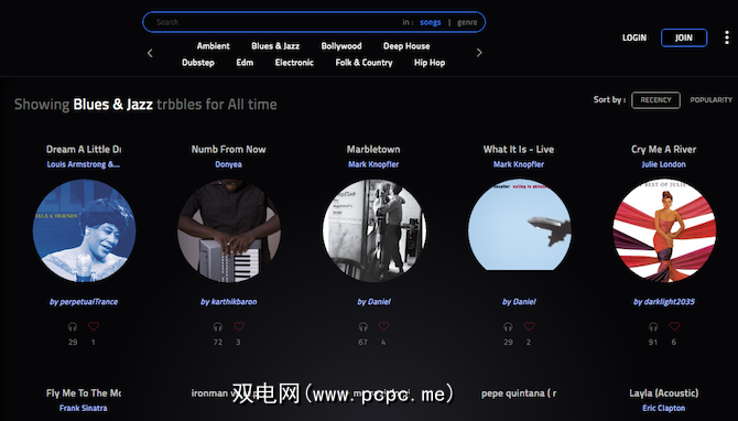 Trbble让用户确定歌曲的“最佳"部分是什么,然后上传。对一些歌曲的简短测试表明,它实际上是一个不错的选择。选择一个类型,它将向您显示一些选择。开始玩,看看自己喜欢什么。如果您喜欢它,则可以再次单击来收听整首歌曲。
