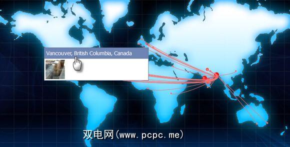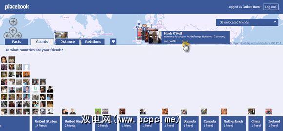此地理服务(也即使您尚未登录,称为 Placebook 的页面也会显示有用的信息。将鼠标悬停在某个区域上,查看该地区的Facebook用户分布(例如,美国拥有42%的Facebook会员)。通过Facebook登录该应用程序会从您朋友的个人资料中加载位置信息(如果有提及的话)。您的位置(如果不存在)将与您的I.P号对应。所有数据均按特定国家/地区的数字,距您的位置的距离以及漂亮的相互关联的显示方式清楚地映射出您的朋友的关系。您可以缩放到某个位置,然后直接跳到任何朋友的个人资料。诸如距离或精确位置之类的一些计算可能不合时宜,但这仍然是一个公平的表示。