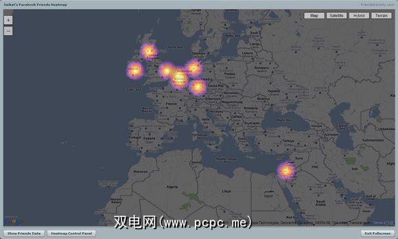 第三方应用程序将朋友的相对集中度显示为全屏热图。使用Google Maps混搭,您可以一目了然地知道它们在世界各地的位置。您可以点击进入朋友的个人资料,并进行隐私保护,以确保朋友的数据受到保护。通过热图控制面板,您可以设置颜色以及在“光谱"视图或“热"视图之间进行选择。