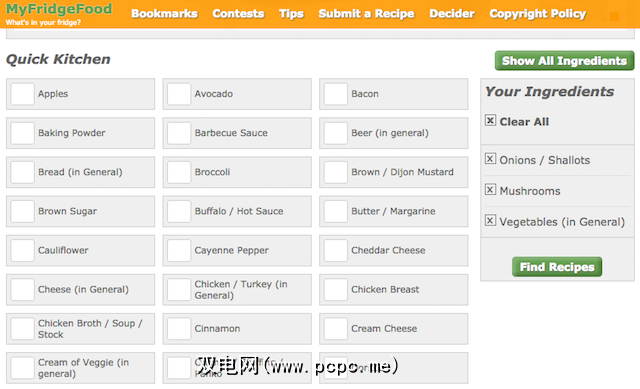 不要用MyFridgeFood这个名字不限于仅存放在冰箱中的物品。便捷的界面使其成为您应该查看的“按成分查找"网站中的第一个。