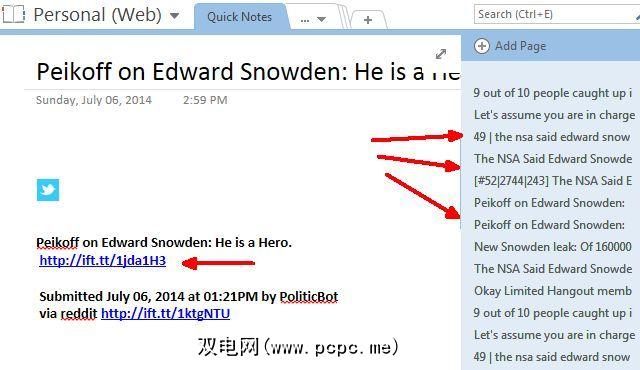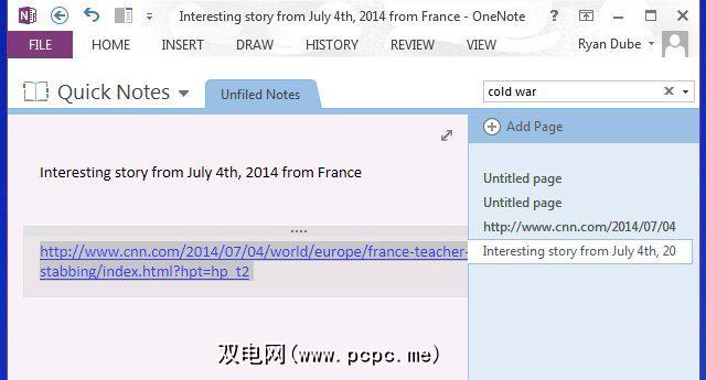 您可以看到,您可以单击任意页面以查看故事详细信息(标题,发布者和链接),然后删除该条目或将故事移动到OneNote中的其他位置。