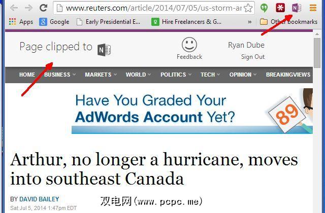 当然,如果您发现自己进行了大量的Web剪辑,您将想要安装可用于主要浏览器的OneNote Clipper插件。这样您就可以将整个页面一键式剪辑到您的OneNote帐户。