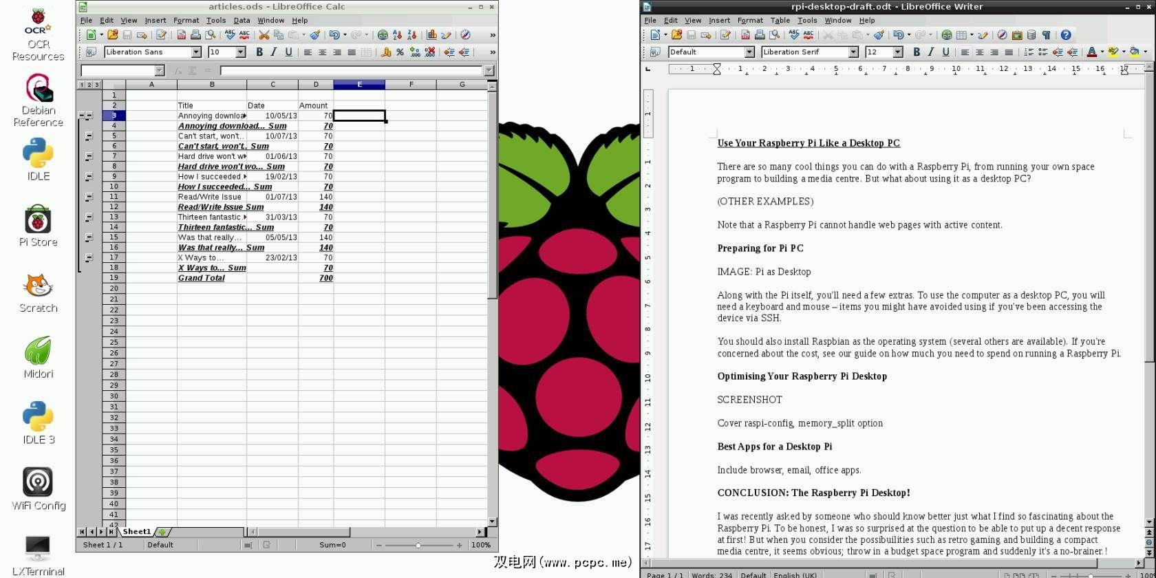 这意味着文字处理,电子表格,演示文稿,图形和数据库程序都可以在Raspberry Pi上运行,您会惊讶LibreOffice在Raspberry Pi 2上的运行状况很好(尽管现在您甚至可以在浏览器中运行它)。