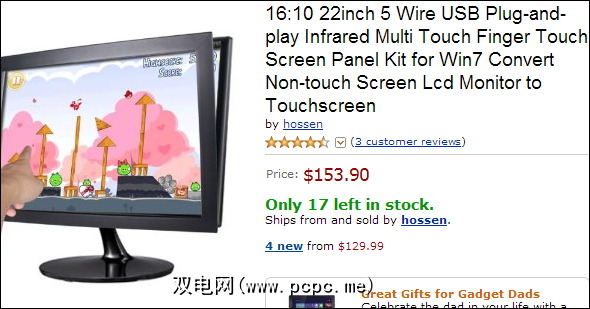 各种制造商制造的触摸屏覆盖物都可以安装在现有屏幕上显示器,将其转换为支持触摸的屏幕。您必须通过USB连接将覆盖层分别插入计算机。这些也不是理想的解决方案,因为它们可能相当昂贵-在亚马逊美国售价约150美元。这是一台新的启用触摸的显示器的价格的一半。