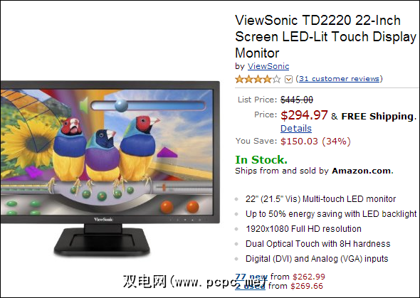 您可以找到价格约为300美元的22英寸触摸式显示器。亚马逊在美国,但是如果您愿意不花钱,可以买到更好的显示器。许多更昂贵的触摸显示器型号将花费您$ 500或更多。