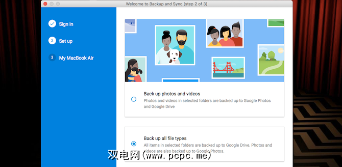 设置Google云端硬盘时,您需要先登录。然后选择备份所有文件类型,然后单击下一步。