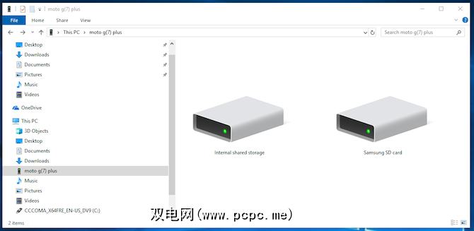 就是这样。系统会在您的计算机上打开一个文件传输窗口,显示您的手机(如果有,则显示SD卡)。然后,您可以开始跨文件复制。