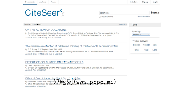 虽然我发现返回的结果的质量不如Scholar和Microsoft Academic Search产生的结果,拥有庞大的论文数据库供您搜索。目前,它拥有近200万份文档。但是,必须强调的是,CiteSeer强调有关计算机科学和信息技术的文章和论文。在为您的化学最终项目研究论文时,请记住这一点!