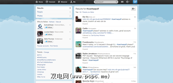 icanhazpdf是压力很大的学生在寻找难以获得的论文和期刊时使用的主题标签。前提很简单。您发布一条推文来命名您要查找的文章,然后有人会(希望)以PDF的形式答复。