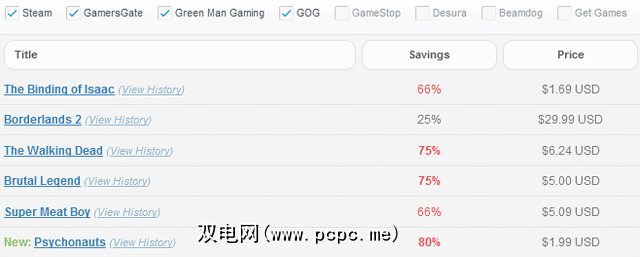 SteamGameSales是一个充当价格聚合器,吸引游戏的网站价格来自多个来源,包括Steam,GamersGate,GOG,GameStop,Desura等。您可以选择要包含在价格比较中的资源,对于每个游戏,SteamGameSales会向您显示通过从所述资源购买可以节省多少零售价格。