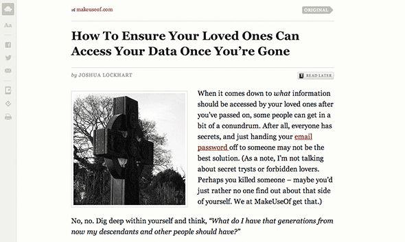 大多数网站(包括该网站)一个)具有标题,侧边栏和很多按钮,这些元素在导航时很有用,但只会在您试图阅读较长的文章时分散您的注意力。像Readability这样的浏览器扩展程序将标题,图片和文本之外的大部分文章分割成条,以使文章更简洁易读,如下面的屏幕截图所示。