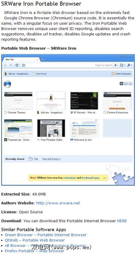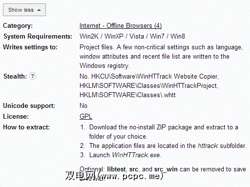 所有列出的应用程序都附带完整的评论。该页面提供一段介绍该应用程序,屏幕截图,提取的大小,下载信息以及其他类似便携式应用程序的段落。