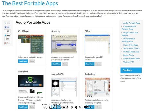 Pendriveapps.com显示得非常好,易于浏览,并且提供了数量可观的应用程序。