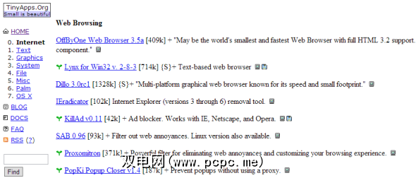 TinyApps.Org为可移植的应用程序目录提供了一种有趣且非常特殊的功能。这里的绝大多数应用程序都是可移植的(我还没有找到其他应用程序),而且它们的尺寸都非常小。