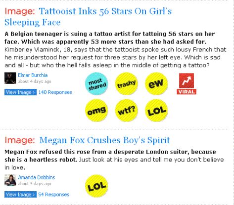 就像其他任何博客一样,这里有档案,不同的类别(从怪异到大声笑到omfg到可爱)和一个社交网络,您可以在其中建立小部件并请求将您的网站链接到Buzzfeed。再说一次,如果您真的很懒惰(或者您不知道如何阅读),这里还有另一个: