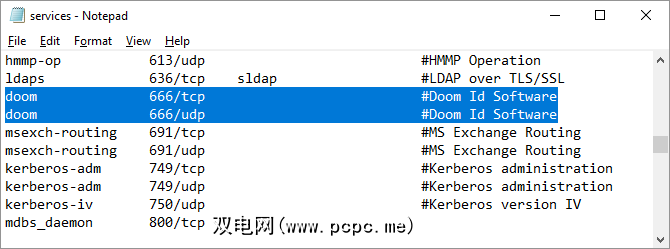 Doom 95是Doom游戏的第一个Windows版本。游戏使用端口666,参考“野兽号"。直到今天,端口666仍然保留用于厄运。