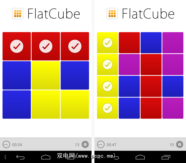 在Google Play上浏览了众多Rubik's Cube应用后,FlatCube是我发现的最友好的应用。 FlatCube并没有尝试在手机屏幕上模拟3D多维数据集,而是为您提供了一个简单的彩色图块网格: