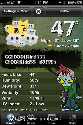 在您前往与僵尸战斗之前,您需要确保天气条件最佳。您需要为僵尸战斗中带一把雨伞吗?您是否需要一些滑雪板才能帮助您在多雪的地形中航行?此应用程序中的僵尸实际上是有帮助的,它们会告诉您天气,就像iPhone上所有功能齐全的天气应用程序一样。当然,这更好,因为它有僵尸。