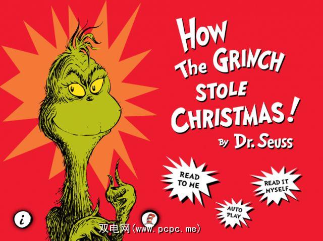 圣诞节期间另一个值得关注的问题是苏斯博士讲述的格林奇故事,以及他从圣诞节杀手y转变为假日英雄的故事。该应用程序将体验带给了iPad,虽然它不像 Charlie Brown 应用程序那样具有交互性,但它确实可以帮助年轻人通过单词突出显示和通过图片学习单词的能力来学习。