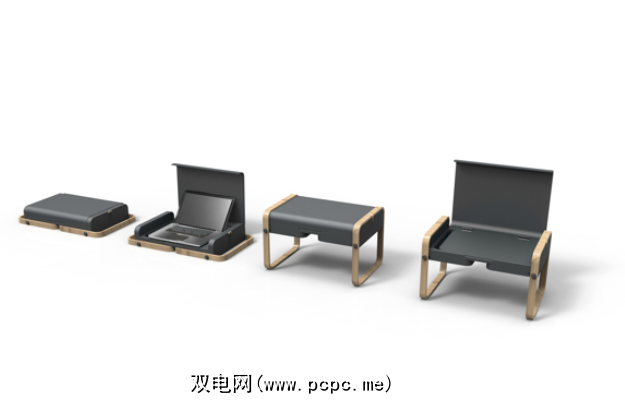 不幸的是,这种便携式办公桌/公文包只是一个概念,但是我敢肯定,有很多旅行自由职业者会这样做。公文包存储您的笔记本电脑和其他配件,并打开一个小桌子,您可以在任何地方使用它,而不必在腿上支撑笔记本电脑。