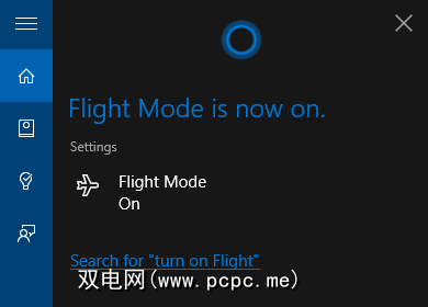 Cortana也可以访问Wi-Fi和飞行模式等设置。告诉您的计算机打开或关闭Wi-Fi,这将在一瞬间完成,而无需您进入“设置"应用或操作中心。