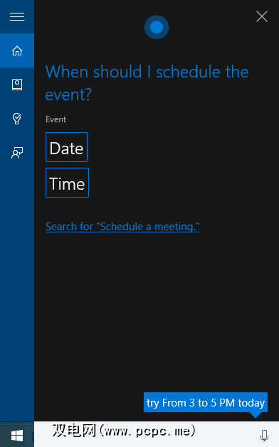 这是另一个功能,它依赖于已设置的Outlook帐户,因此如果您要使用它,请先执行该操作。在那儿,只需向Cortana说“安排会议",她就会打开对话,以便您可以告诉她具体细节。