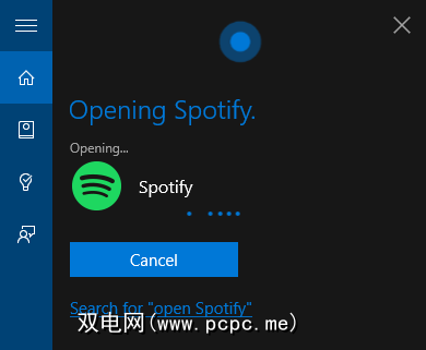 您需要做的就是单击麦克风图标-或说“嘿Cortana"(如果您启用了该设置),并指示PC打开所需的应用。例如,要产生上述结果,我只是简单地说“打开Spotify"。