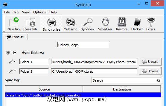Synkron可以做到这一点,其简约的界面可以使整体过程非常简单。只需选择所需的文件夹,即可临时同步它们或安排特定时间定期执行同步。