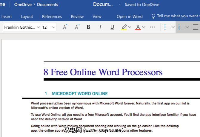 字处理一直是Microsoft Word的同义词。当然,我们列表中的第一个应用程序是Microsoft的Word在线版本。当您有足够的理由使用Office Online时,为什么要为Microsoft Office付费?