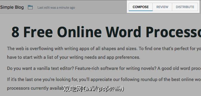 除了常用的文档编辑和协作工具外,该应用程序在编写过程的每个阶段都具有单独的视图。这使界面变得简约,因为每个阶段都需要使用唯一的工具。
