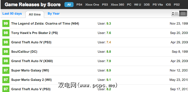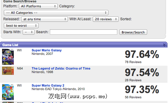 像游戏排名一样,元批评家汇总了得分通过各种渠道确定最佳游戏。另外,像游戏排名一样,它并不能一直追溯到真正的老东西,因为那时很难再进行评论,而且大多数都包含在印刷杂志中,其中许多都是随着时间流逝的。不过,如果您想观看最好的游戏,那将是一个不错的网站,并且如果您真的很疯狂,可以使用任何一个汇总的网站来查看有史以来最糟糕的游戏。您知道,如果您是受虐狂之类的人。
